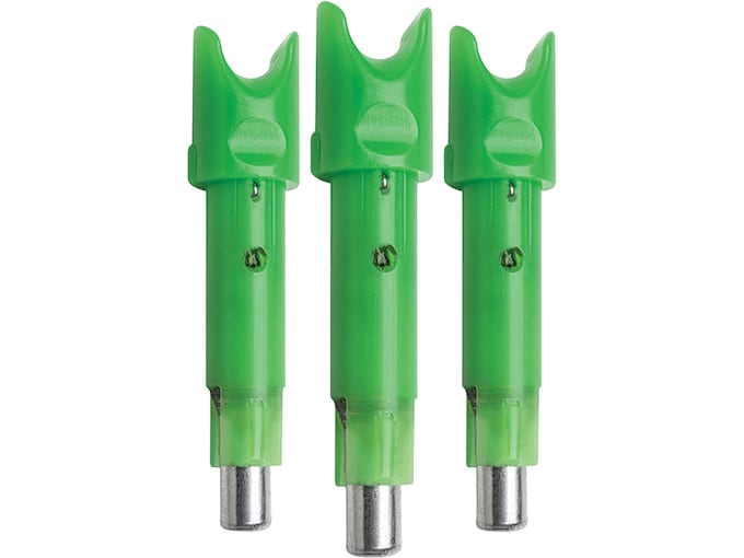 The TenPoint ACU-X Lighted Nock for HP Bushing 3PK contains a one-piece Nock/LED unit that is indexed with the vanes and press fits into the arrow’s Aluminum Bushing. Upon firing the crossbow, the bowstring’s force compresses the two pieces and activates the lighted nock. Deactivate the easy o…